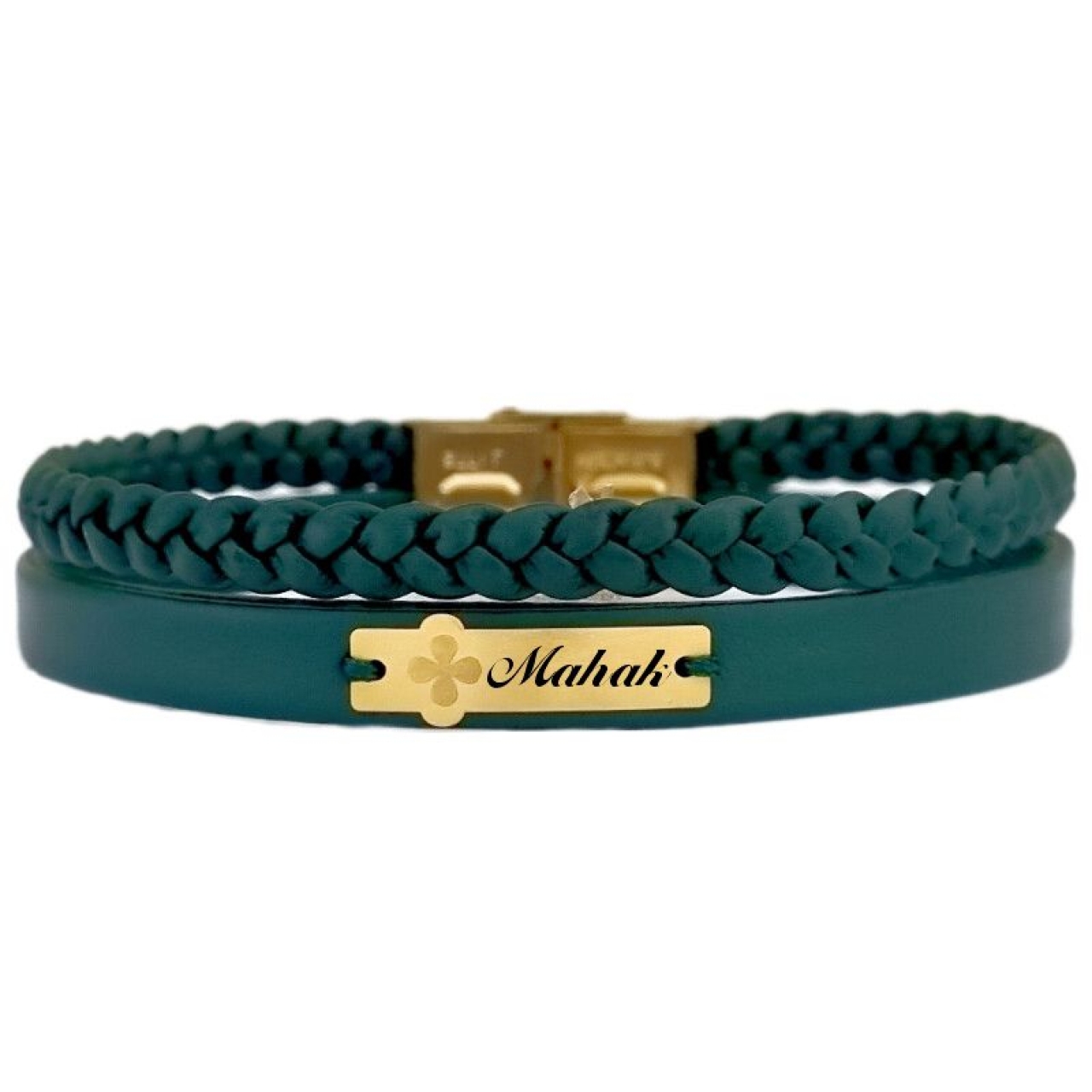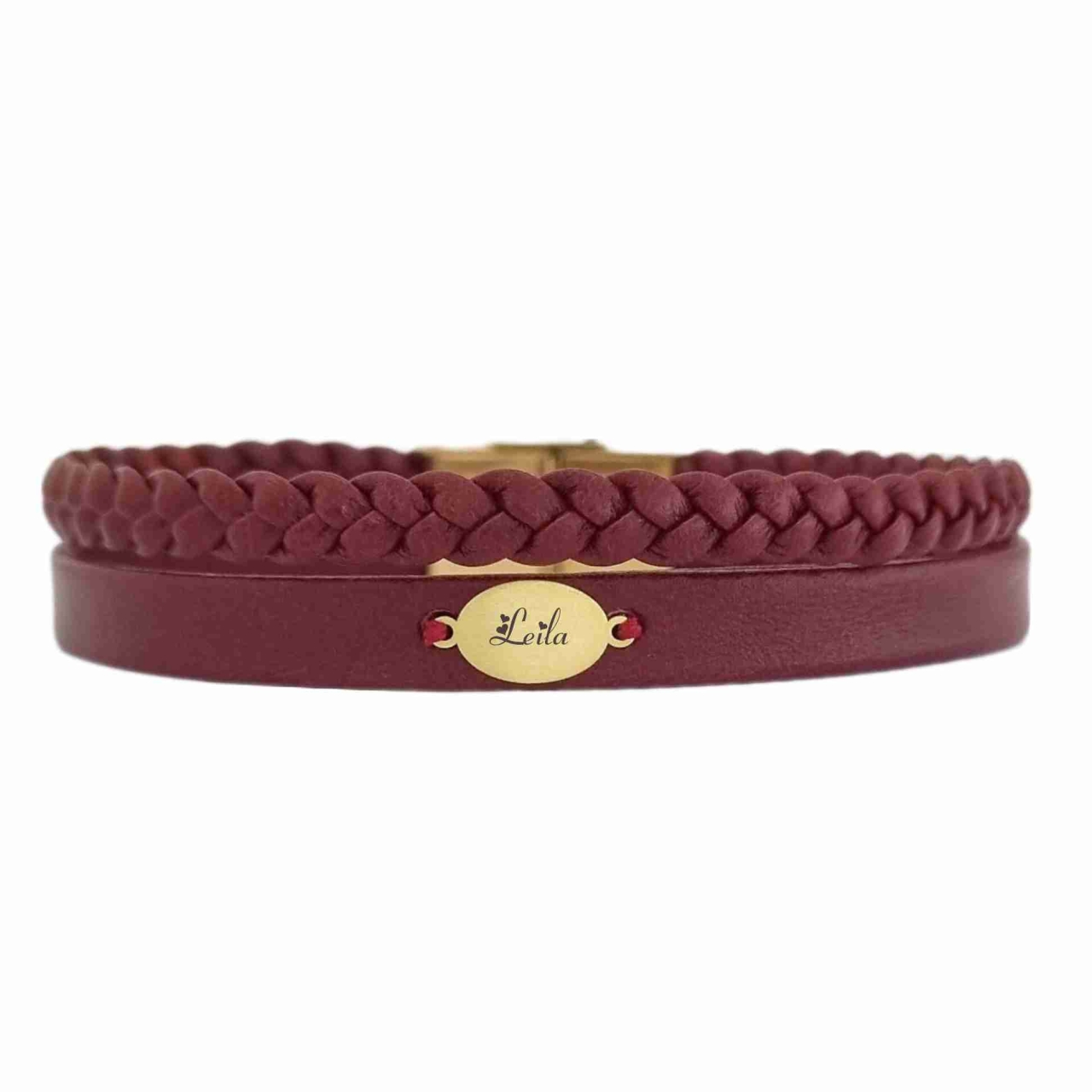 دستبند چرم و طلا 18 عیار زنانه لیردا مدل اسم رایان کد Bgh228