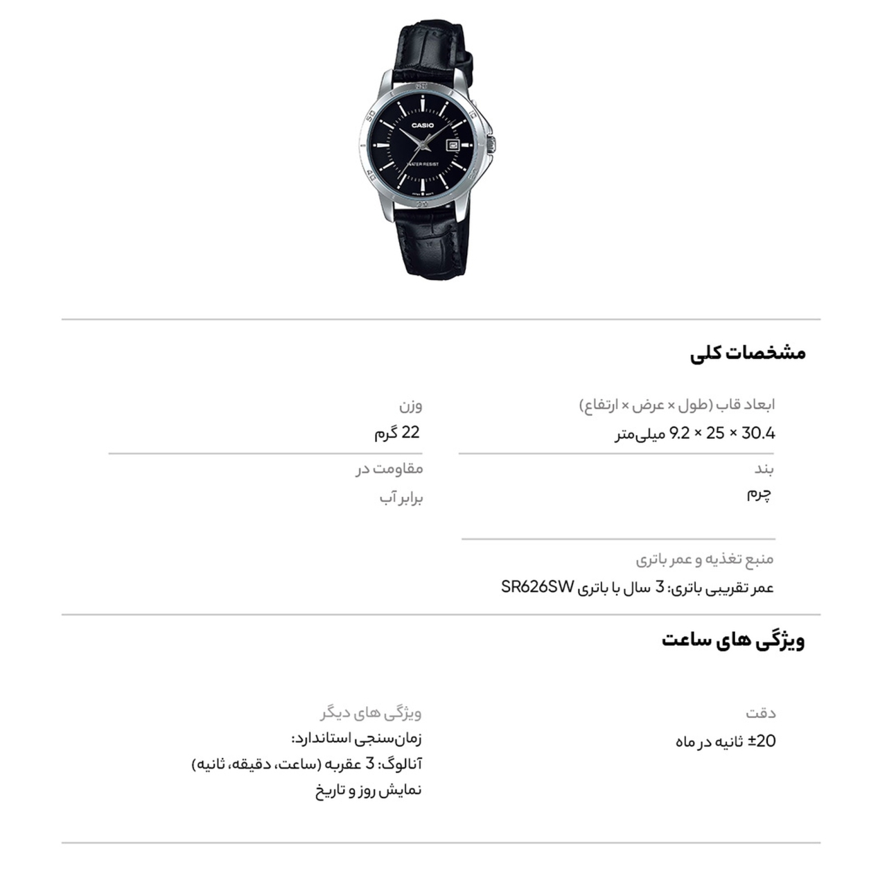 ساعت مچی عقربهای کوارتز زنانه کاسیو مدل LTP-VT03D-1BDF
