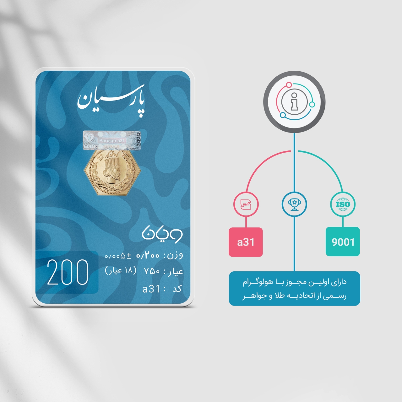 شمش طلای پارسیان، گزینه ای ایده آل برای سرمایه‌گذاری و هدیه دادن است. این شمش ها با طراحی بسیار زیبا و کارت‌های رنگی ارائه می‌شوند و در وزن‌های متنوعی ارائه میگردد. شرکت پارسیان، سازنده این محصول، دارای اولین مجوز با هولوگرام رسمی از اتحادیه طلا و جواهر است و این اعتبار سبب شده تا شمش های پارسیان کد 001 (a31) در سراسر ایران مورد قبول باشد. پارسیان به عنوان یک شرکت معتبر، تضمین می‌کند که این شمش ها از طلا با عیار ذکر شده ساخته شده باشد و به همین دلیل، سرمایه‌گذاری در این محصول، یک گزینه امن و مطمئن به شمار می‌ آورد علاوه بر این، طراحی زیبا و متنوع شمش های پارسیان آنها را به هدیه‌ای ایده آل برای مناسبت‌های مختلف تبدیل می‌کند. این محصول با ارائه در وزن‌های مختلف، گزینه‌های متنوعی را برای خریداران فراهم می‌آورد. در مجموع، شمش طلای پارسیان با ترکیب ویژگی‌های بصری زیبا، اعتبار شرکت سازنده و مقرون به صرفه بودن، به عنوان یک انتخاب ایده آل برای سرمایه‌گذاری و هدیه دادن محسوب می‌شود.